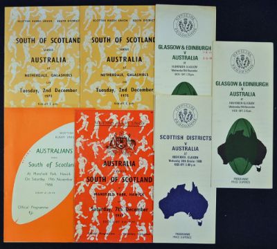 Collection of Australia Rugby Tour to the UK scarce Scottish programmes from 1957-1975 to include vs South of Scotland '57, '66 and 2x '75, vs Glasgow and Edinburgh (2) '68 and vs Scottish Districts '68 (VG) (8)