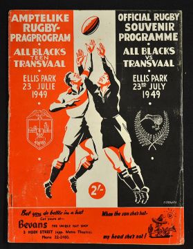 1949 New Zealand Rugby Tour of South Africa Souvenir Programme - v Transvaal played 23rd July at Ellis Park, with some wear, creases, some staple rust, although quite clean, (F)