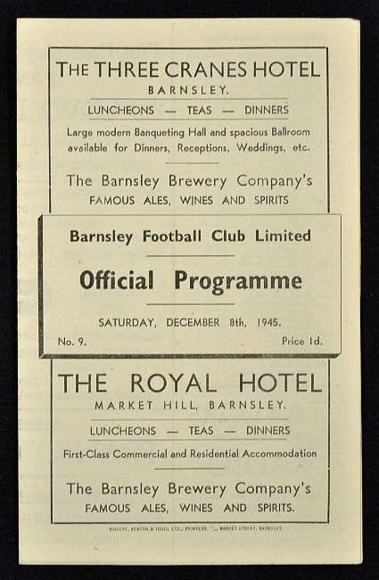 War Time 1945/1946 Barnsley v Grimsby Town football programme, team changes otherwise good