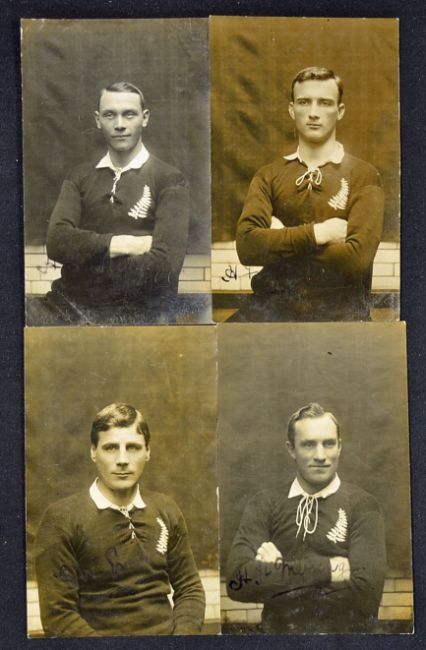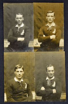 Rare collection of New Zealand Rugby League/Northern Union players postcards - 24x half portraits real photographs of each player in the NZ shirt with hand written names in pen on the obverse of each card c/w period hand written players name and details on the reverse - to incl the Tour organiser and player Baskiville, Bumper Wright (Capt) and George Smith (vice capt) et al - only 3 members missing to incl Macgregor, Tyler and Byrne. - all unused some slight creases to the corners otherwise overall generally (G) (24) Note The NZ team were the immediate predecessors of the New Zealand national rugby league team and the tour had a large role in establishing rugby league in both Australia and New Zealand, and also gave birth to international rugby league - and was commemorated by a centenary tour in 2007 - the 2007 All Golds Tour