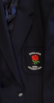 1990 Official England Rugby tour to Argentina Blazer issued to and worn by Roger Uttley c/w embroidered England crest and inscribed above and below "England 1990 Argentina"