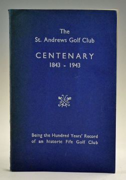 Bennett, A Esq, LLD - 'The St Andrews Golf Club Centenary 1843-1943' Being the Hundred Years' Record of an historic Fife Golf Club - St Andrews, Scotland, 1st ed 1943, 75p, illustrated - complete with St Andrews Golf Club Complimentary Slip - minor fading to cover, although the pages are clean, overall (G)