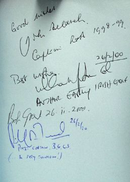 Behrend, John - profusely signed "St Andrew's Night and Other Golfing Stories" 1st ed 1992 Presentation Copy by the Publishers to Blackwell dated 26 Feb 2000 signed by the publisher HRJ Grant to the limitation page, and signed to the front free end plate by John Beharrell (Capt R&A 1998/99), William H Gibson author of Early Irish Golf, Bob Grant et al - with illustrations by Ionicus (Jos Armitage) c/w the original pictorial dust jacket appears unread hence (G)