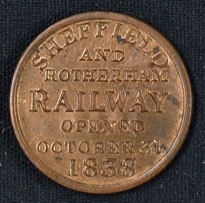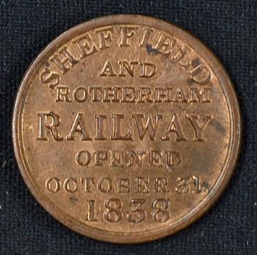 Railway Opening of the Sheffield and Rotherham Railway 1838 date 31st October, a copper admission ticket for guest No. 1543 that interestingly doubles as ticket by Omnibus No.3 to the event, size 25mm diameter, in good condition