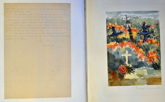 Unique Kampfgruppe Von Werthern Roadbook signed by Commander Hauptmann Francois. From the residence of Adolf Hitler in the Berghof, an absolutely unique document brought back by one of the liaison officers. This book is dedicated to Adolf Hitler by Hauptmann Francois, Commander of the Kampfgruppe von Werthern. It covers the retreat from Lithuania covering periods from July to September 1944 on roughly a daily basis, bound in Military textured fabric with a leather spine, displaying a large metallic shield plaque to the front, entitled ‘Kampfgruppe v Werthern Francois’, some letters are missing but glue marks are still clear to read, signed to the front page by Commander Francois in ink, the book contains typed extracts of events, a rough translation from page 3 ‘In the East, the German lines are pushed. The Russians rush westward with incalculable superiority in men and equipment. On July 7th, the Von Werthern - François Brigade opposed this flood which approached the German border’, with the name of the writer at the bottom of most, further translation ‘At the first hours in the morning, we overtake refugees. Tired, they are slumped on their saddles, and are partially put to sleep by the regular rhythm of their horses. Dragging feet, leaned forward, the walkers flow back. They are squatted in carts, many have only little place and sleep. The drivers attached reins to their neck. All are exhausted, burned by the sun and the efforts’, of the harshness of these fights came the idea to bring back these experiences and to illustrate them by superbly detailed sketches accompanying the text, some coloured, others in pencil, and some action photographs, all stuck to large pieces of card and bound, some protective tissue pieces covering sketches, wonderfully presented in good condition, p130, measuring 35 x 42 x 6.5cm. This books collects these reports. They are neither modified nor edited. The character of this warrior life must be preserved. They are commented by literal extracts of the fight bulletins of the Brigade