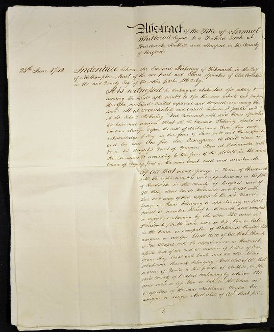 Bedfordshire Samuel Whitbread 1742 Indenture Documents in relation to Sir Edward Pickering of Titchmarsh Northampton, and the Manor of Hardwick, 9 pages, ink on paper, pages measure 33 x 41cm approx, readable and in good condition