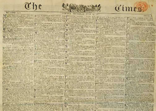 The Times Newspaper 1815 dated 13 July with contents relating to post Waterloo news. Long letter from Marshall Ney (1st Prince de la Moskowa) on Waterloo, dated Paris June 26, P2, text is good, large format, good condition