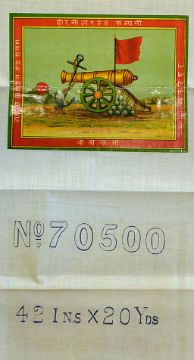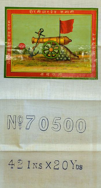 Scarce Indian Textile Labels 'Tickets' a quantity of interesting Indian textile labels or tickets as known in the trade, designed in India and Printed in Britain [c early 20thC], colourful, from a fragile glossed paper based material with British titles, to include Thomas Aston & Sons Manchester, Ashton Hoare & Co Ltd Calcutta, Hoare. Miller & Co, predominantly stuck to fabric, some further reference numbers printed alongside, many of the same design, folded with card cased with order numbers present to some, labels are generally good as folded in fabric, cases are poor to some, quantity, ideal for framing (#35+). Note: For further details please read an article 'Labelling Legends', especially to the image, 'Broker Label' p47. The Hindu merchant is sitting with bales of British made imported cotton fabric printed to mimic traditional Indian designs and beside him is the labels (tickets), Indian-designed but British-printed, which he will affix to the fabric. The Hindi above him translates as 'Broker Ticket'. Referenced from Country Life December 12th 1991