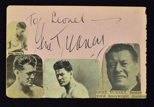 Boxing Gene Tunney Autograph World Heavy Weight Champion signed 'To Lionel Gene Tunney' in ink with newspaper cuttings to an album page