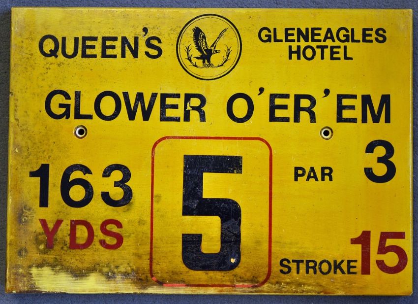 Gleneagles Hotel 'Queens' Golf Course Tee Plaque - Hole 5 'Glower O'er'em'