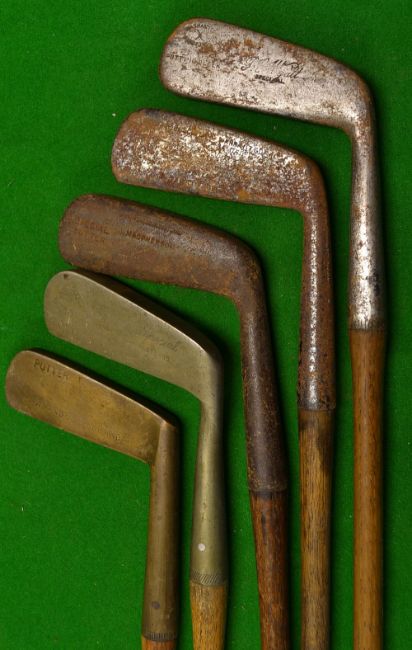 5x various blade putters incl P Wyatt putting cleek, J. B Halley brass blade, others by Gibson - some with grips hence (A/F)