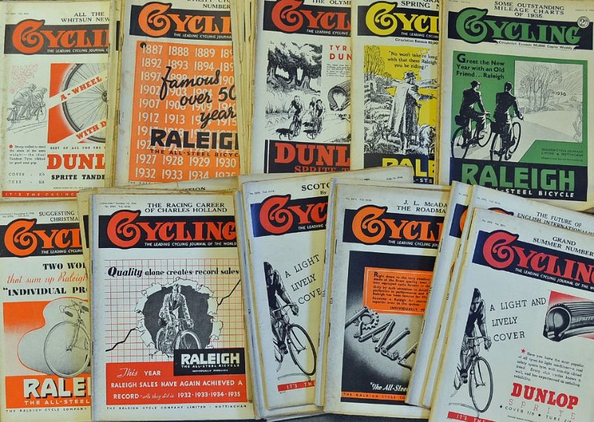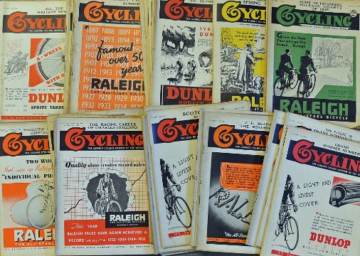 Collection of 1936 "Cycling" magazines to incl good run from Vol. XCI and XCII from January 8th no. 2345 to December 30th no. 2396 - all with their original covers otherwise F/G (#38)