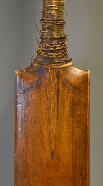 Early Cricket Bat made Cobbett c.1890s with 'Cobbett' stamped either side of the splice (clear) to the front of the blade, a round backed blade, twine is loose in places and requires attention, otherwise it appears unused overall a nice example
