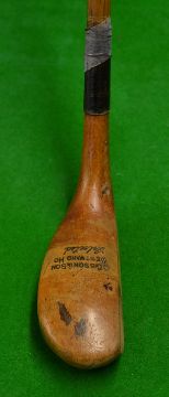 C. Gibson & Son Westward Ho striped top light stained elongated mallet head putter with central brass sole plate and a clear maker shaft stamp