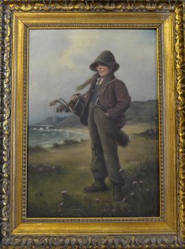 Jowett, S (After) "THE DUFFERS CADDIE" oleograph on canvas with signature to the bottom rhc from the original by Thomas Blackwood image 19.5 x 13.5 in gilt frame overall 25.5 x 19.5