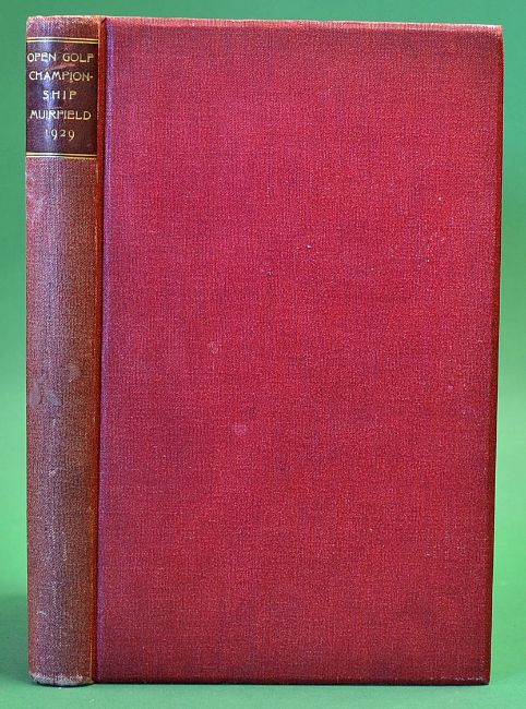 Very rare set of 1929 Open Golf Championship official bound programmes and handwritten manuscripts by Bernard Darwin, Ian Hay and John Buchan - played at Muirfield and comprises a complete set of 5 programmes issued on the Monday, Tuesday, Wednesday (1st Rnd), Thursday (2nd Rnd) and Friday (final two rounds) and includes all the pairing sheets for each day and printed results. Each programme has an appeal for the local Children's Hospital, two of which were written by Ian Hay, two by John Buchan and one - the final day - by Bernard Darwin. The compiler of these programmes retained the original manuscripts from the three contributors, as well as their notes of thanks signed by all three but Bernard Darwin's signature has been cut from the end of his contribution otherwise fine. The programmes complete with their covers and the manuscript material are all bound together in a quarter leather / red cloth binding - quite remarkable collection and in such good overall condition to incl illustrations from the Life Association of Scotland Calendars by Michael Brown, numerous golfing advertisements et al overall (VG) Note: This was the first year that the R&A produced an official programme and presented a bound copy to each of the contributors