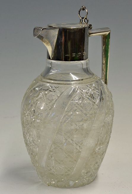 Leamington Spa Silver Claret Jug won at one of the first Tennis Clubs in England, for the Mixed Doubles 1894, won by Mr D Lysaght and Mrs WH Pickering, who won the Ladies All Comers Singles in 1896 and played Miss Ellen Stawell-Brown in 1901 in her first Wimbledon, glass with silver handle and hinged top, engraved 'Leamington Tennis Tournament First Prize Mixed Doubles 1894', hallmarked, measuring 25cm high