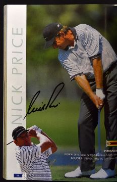 2001 Royal Lytham Open Golf Championship programme signed by 30 Open and other Major golf champions - to incl Seve Ballesteros, Tiger Woods to their player profiles (p.11/136) together with a further 51 players signatures including 30 x Major Charles, Clarke, Daly, Duval, Faldo, Jacklin, Lyle, Mickleson, Player, Tom Watson, etc - in all 53 signatures (G)