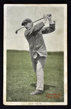 Early 20thc Jack White Open Golf Champion endorsed Dunlop Rubber Co. acknowledgement postcard - inscribed on the back "Leading Players find the Dunlop Golf Ball Indispensable" used and dated 1908 some wear to edges and foxing on the reverse (F)