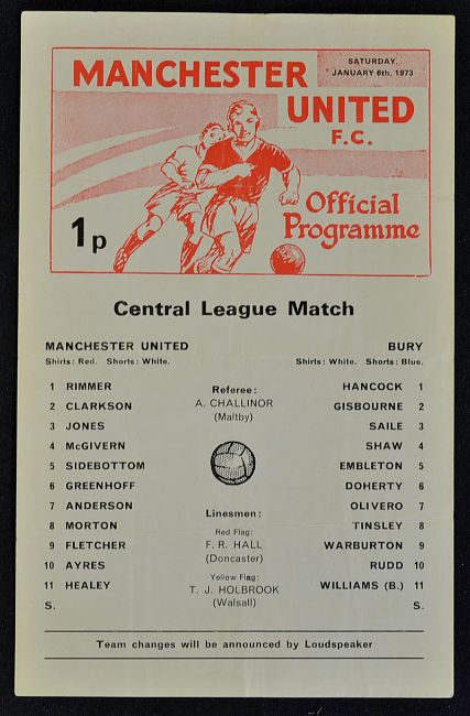 Scarce issue 1972/1973 Manchester United Reserves v Bury postponed match programme dated 6th January 1973, single sheet issue.