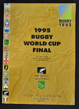 1995 Rugby World Cup final programme - New Zealand (12) v South Africa (15) and unforgettable final played at Johannesburg in the presence of President Nelson Mandela overall (G)