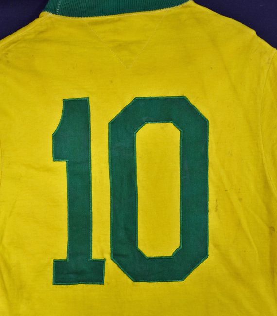 PELE Signed 1970 Brazil Match Worn Football Shirt the famous yellow and green shirt signed to the front in ink 'Edson Pele', with stitched No10 to the back and the 3 star CBD Crest to the front, a short sleeve shirt with 'Athleta' label internally, the shirt has some signs of wear but is overall in good condition. Previous Pele football shirts that have sold include his last appearance for Brazil against Yugoslavia selling for £8640 (Incl. Buyer's Premium) and his last goal scored against Austria by Mullocks Auctions for £9000 (Incl. Buyer's Premium) Note: Vendor originally purchased the shirt from Abilio Jose da Silva 'Knockout Jack', the former masseur of the Brazilian national football team