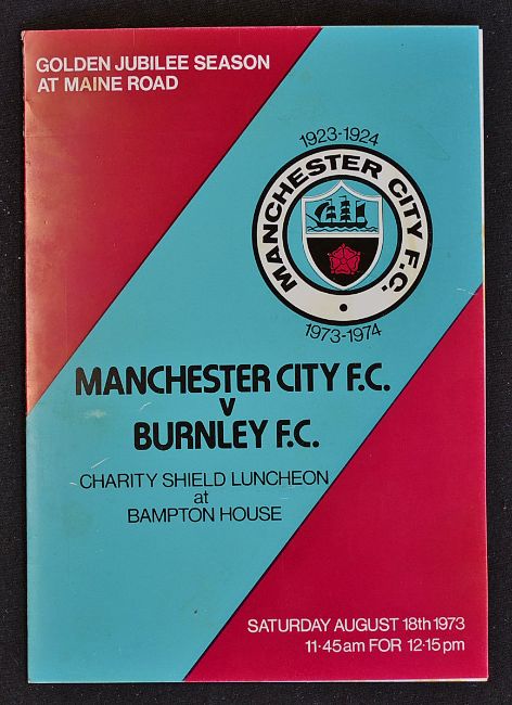 1973 Charity Shield Lunch Menu Manchester City v Burnley FC at Bampton House, Golden Jubilee Season a 4 page card with menu and toasts listed, appears in god condition