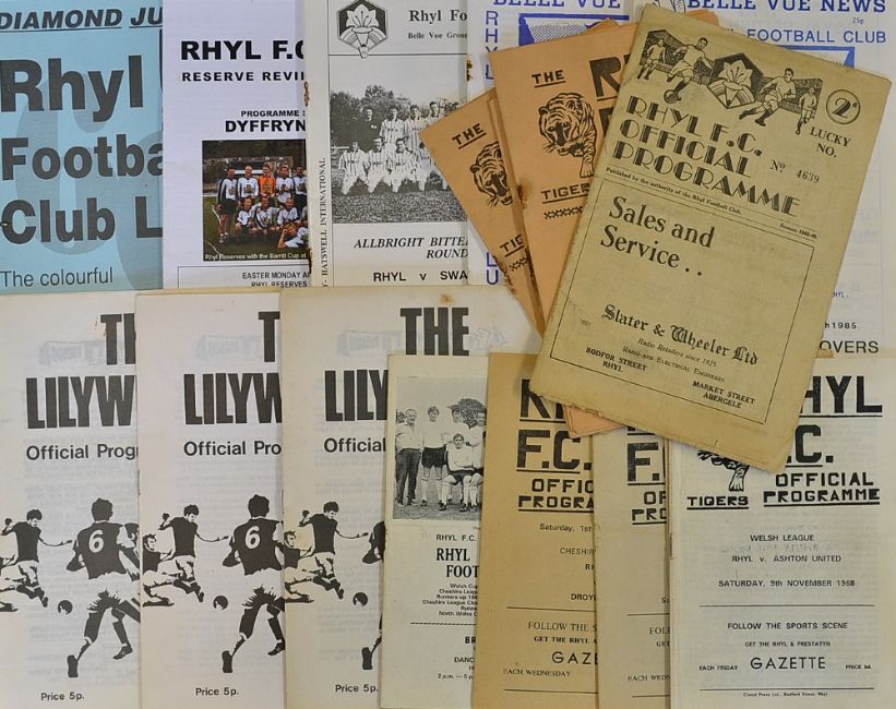 Selection of Rhyl Football Programmes from 1960s onwards to include 1948/49 v Chirk (Welsh Cup), 1966/7 Oswestry Town, Hyde United, 1968/9 Ashton United, 1969/70 Nantwich Town, Ashton United, Droylsden, plus others, condition varies with some in fair condition at best, worth inspecting (#20)