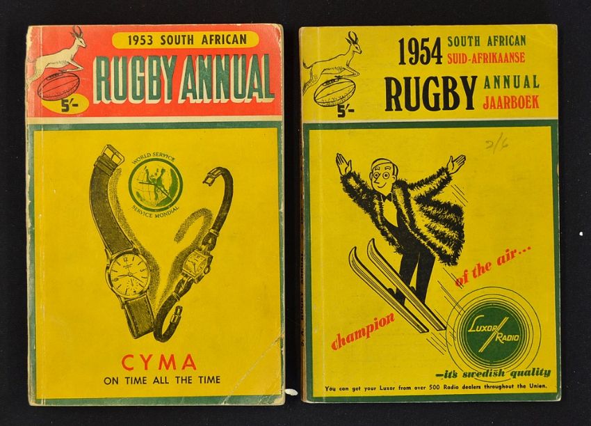 2x early 1950's South Africa Rugby Annual Yearbooks - to incl 1953 and 1954 both ibn their original wrappers some minor wear to the top and tail of the spine, slight soiling to the covers and minor creases to the corners - clean internally (F/G)