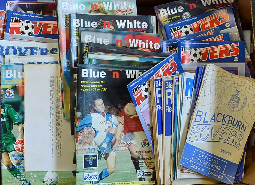 Collection of Blackburn Rovers 1960s Onwards Football Programmes with a good content of 1970s and 1980s, home programmes with a selection of 1994/95 Premiership Championship season, requires a sort, overall condition varies A/G (170+) 1 Box