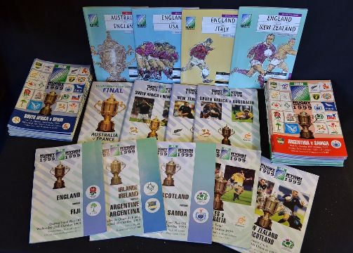 1999 Rugby World Cup programmes (30) to incl Final, 3/4th Place, 2x Semi's, 5x quarter finals and 21 x group games incl 4x Pool A, 6x Pool B, 1x Pool C double programme for Canada v Namibia and France v Fiji played in France, 5x Pool D and 5x Pool E overall (F/G) plus 4x 1991 RWC incl the Final England v Australia (34)