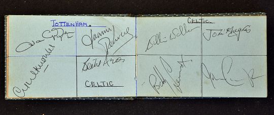 Interesting Football Autograph Album - consisting of many signature from the 1960s Celtic, Rangers, Leeds, Tottenham Hotspur, all the Lisbon Lions, plus manager Jock Stein, Willie Johnston, Willie Maddell, also Basle and Steaua Bucharest, signatures appear in clean condition, 50 signatures in one album