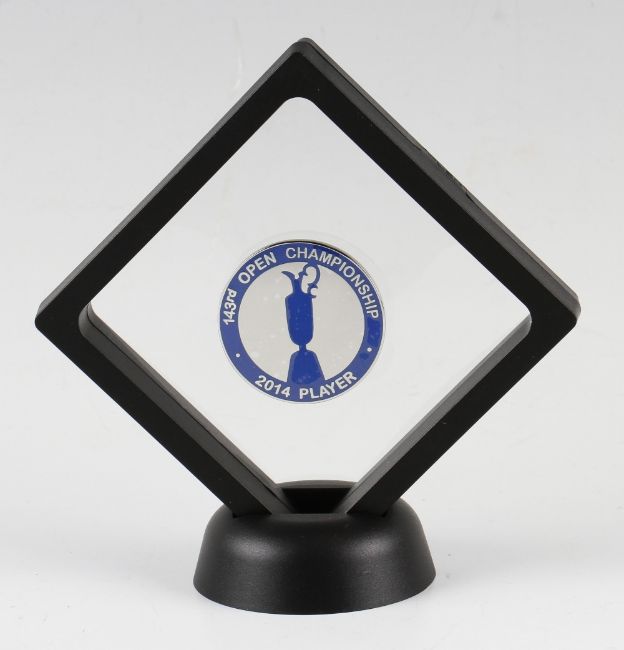 2014 Official R&A Open Golf Championship Players Enamel Badge - won by Rory McIlroy - played at Royal Liverpool Golf Club - mounted and framed 3.5 x 3.5"