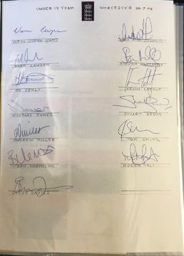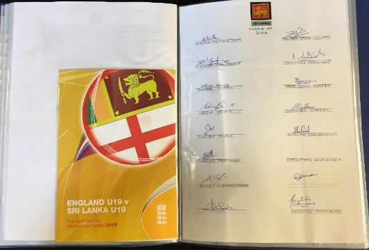 Cricket - County Club Team Autographs including Derbyshire, Durham, Essex, Glamorgan, Gloucestershire, Hampshire, Kent, Lancashire, Leicestershire, Middlesex, Northamptonshire, Nottinghamshire, Somerset, Surrey, Sussex, Warwickshire, Worcestershire and Yorkshire, plus Bangladesh and Bangladesh under 19's, Worcestershire under 19's, Sri Lanka under 19's, Glamorgan former players reunion 10th June 2005 and Worcestershire W.O.P.A 9th July 2005, all c.2005, housed in folder