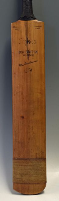 Cricket - Slazenger 'Don Bradman' Cricket Bat -Sykes to the face 'Don Bradman Autograph' Model, with makers mark to the shoulders, rubber worn to grip otherwise in G condition overall