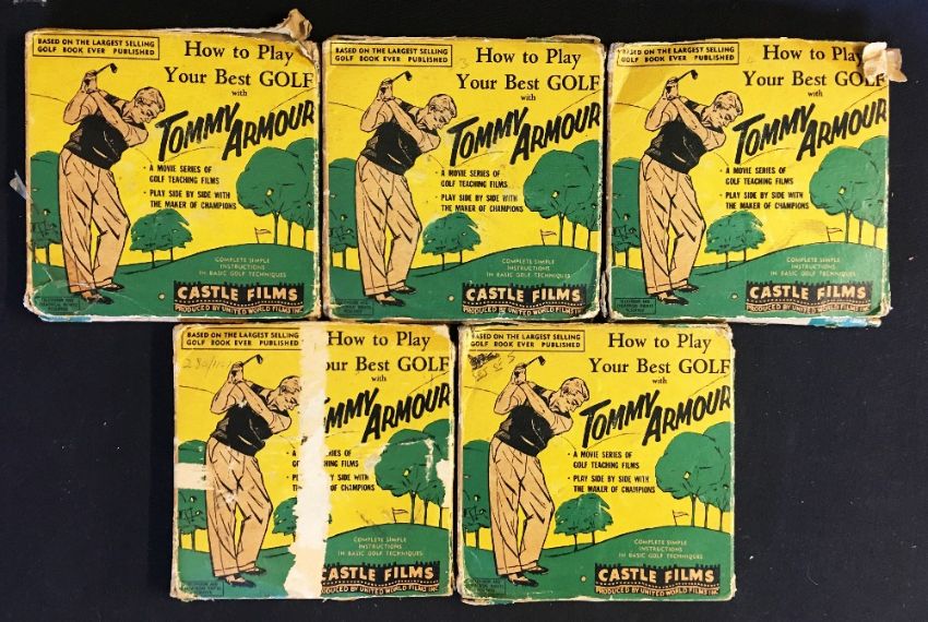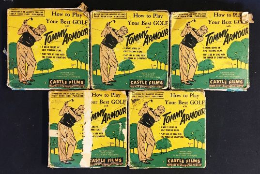 Collection of 5x Tommy Armour "How to Play Your Best Game" 8mm cine film reels - all in their original pictorial sleeves by Castle Films United World Film Inc - some details in the lids to incl Short Game Pt.I and Pt. II; The Grip; The Stance and Swing Away - packets (A/F)