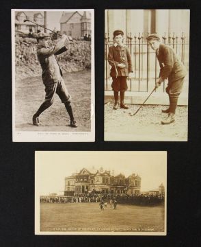 Collection of Prince of Wales St Andrews golfing postcards to incl Putting on the 18th Green by Fletcher & Son, another of the young H.R.H Prince Edward in full swing from Rotary Photographic Series and on other - all unused (G) (3)
