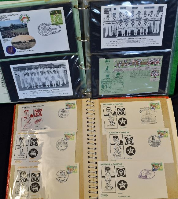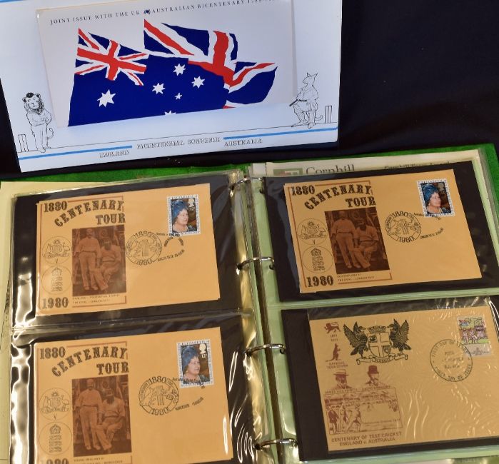 Cricket - Selection of 1990s Cricket First Days Covers including 1989 Benson and Hedges Cup, Sheffield Shield Final, Natwest Bank Trophy, Ashes, 1980 Centenary Tour, 1987 M.C.C. Bi-Centenary and Stamps, approx. 65 in total, contained within albums (4)
