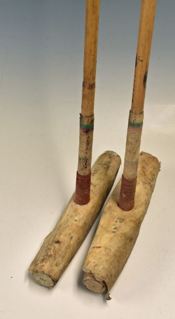 Equestrian - 2 x Polo Mallets with original vellum sheath around bamboo handle marked with 'F Ahmed India Meerut Polo Specialist', vellum sheath also around heads, both with grips and appear in good condition, measures 125-130cm approx. (2)