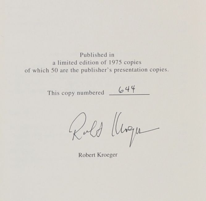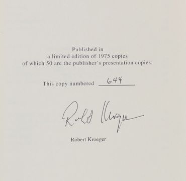 Kroeger, Robert signed - "The Golf Courses of Old Tom Morris - A Look at Early Golf Course Architecture "1st ed 1995 signed to the limitation page no 644/1975 - full leather and gilt boards - together with a dedication to the front free end plate to George Makey founder of "Keepers of The Green" Charity Organisation in 1998 at The Grand Tournament in St Andrews and signed by several dedicated members - appears unread hence (VG)
