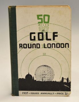 London Golf Clubs Annual 1937 - "50 Miles of Golf Round London" 1st ed in the original pictorial boards with cloth spine together with the original folding map (complete but with one tear to one corner hence loose), owners name and address written to the first title page, internally clean although there is some foxing to the front and rear free end plates