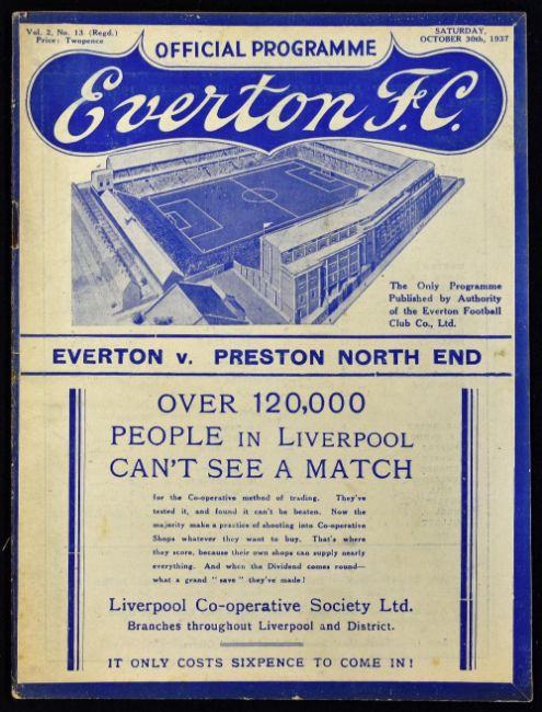 Pre-War 1937/1938 Everton v Preston NE Central League match programme 30 October 1937. Good, no writing.