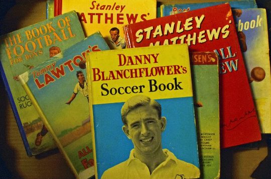 Selection of football books to include Big Football Book 1955, 1957, Stanley Matthews Football Album 1949, Football Parade (presented by Stan Matthews) 1950, Stan Matthews Football Review 1955, Stan Mortensen Soccer Book 1949, Danny Blanchflower Soccer Book 1959, Football Yearbook 1950, Tommy Lawton All Stars book 1950, Bert Williams All Star book 1951, Book of Football for boys 1950 (11 in 1 box) Fair-good.