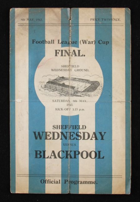 1942/1943 War Cup Final Sheffield Wednesday v Blackpool football programme 8 May 1943, 4 pager. Poor, view to assess.
