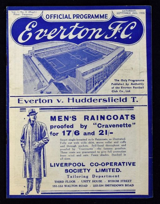Pre-War 1936/1937 Everton v Huddersfield Town match programme 26 September 1936. Good, no writing.