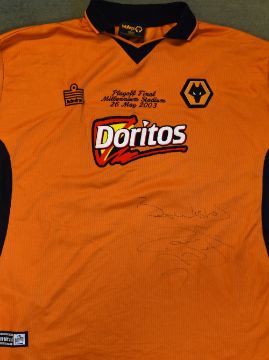 Wolverhampton Wanderers player shirt, No. 23 Ince, 26 May 2003 Play Off Final at Millenium Stadium, hand signed by Paul Ince. Good. NB: Wolves won 3-0 v Sheffield United to gain promotion to the Premier League.