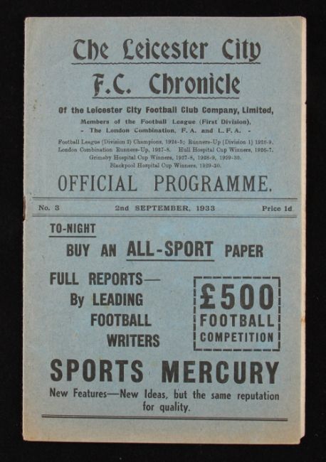 1933/1934 Leicester City v Manchester City match programme match programme 2nd September 1933. Fair-Good.