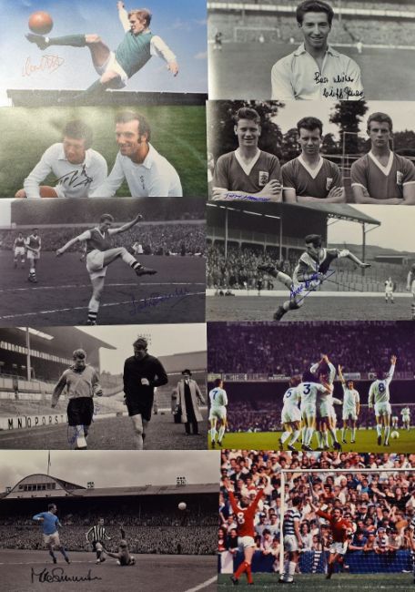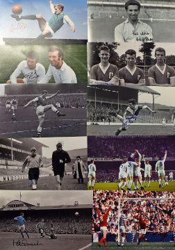 Selection of Various Signed Football Prints all featuring former players from the 1950s - 1980s, all superbly hand-signed in permanent marker, including fine examples of Peter Lorimer, Nat Lofthouse, Paul Scholes, John Barnwell, Terry Hennessey, Gordon Milne, Bobby Kerr, Maurice Setters and Norman Whiteside etc., comes with a Certificate of Authenticity. (50)