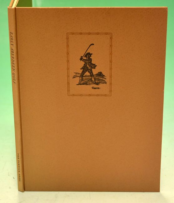 Hamilton, David signed "Early Aberdeen Golf - Golfing Small-Talk in 1636" - Presentation Copy - publ'd in 1986 ltd ed no 450 copies, brown pictorial board covers, 32p, 4x illus - It extracts and analyses the golfing material in Wedderburn's Vocabula printed in Aberdeen in 1636, specially printed for The Partick Press by the late Tom Rae at his Black Pennell Press, Greenock -c/w authors signed complement slip "I'm sending you a presentation copy" (VG)