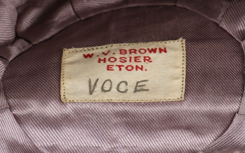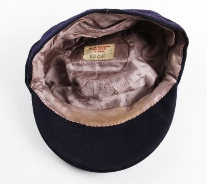 1930s England International Cricket Cap awarded to Bill Voce: navy blue cricket cap c/w England 3 Lions embroidered crest and c/w makers label W V Brown Hosier Eton having Voce in Ink pen Note. The cap has been handed down through the family which came from long term benefactor of Derbyshire cricket club who was a very private and reclusive figure who didn't leave his house for the last ten years of his life - and the family would like to respect his privacy and to remain anonymous.